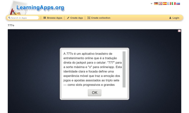 A 777o é um aplicativo brasileiro de entretenimento online que é a tradução direta do jackpot para o celular: "777" para a sorte máxima e "o" para online/app. Esta identidade clara e focada define uma experiência móvel que traz a emoção dos jogos e apostas associados ao triplo sete — como slots progressivos e grandes prêmios — para uma interface rápida e de fácil uso. Projetado para quem quer carregar a sorte no bolso, o 777o estabelece-se como o app onde o símbolo do maior prêmio está sempre disponível, a um clique de distância.