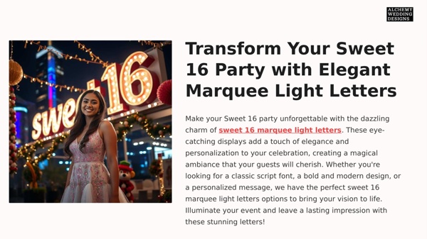 Transform Your Sweet 16 Party with Elegant Marquee Light Letters Display.pptx