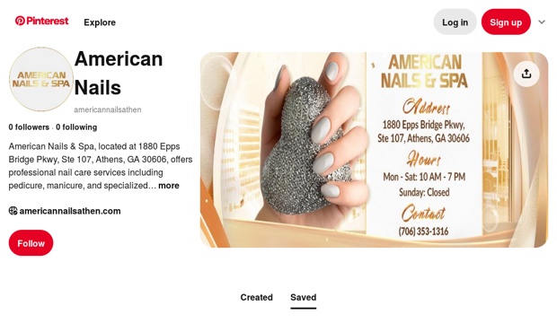 American Nails & Spa, located at 1880 Epps Bridge Pkwy, Ste 107, Athens, GA 30606, offers professional nail care services including pedicure, manicure, and specialized care for abnormally long nails with an extra charge.