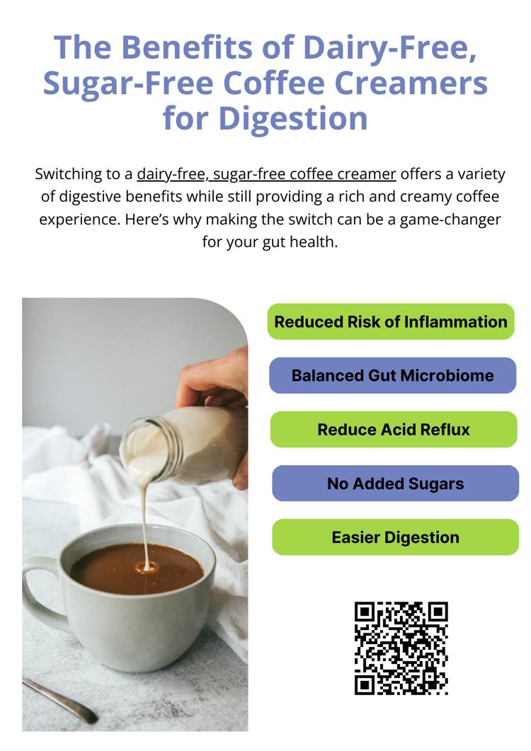 Dairy-free, sugar-free coffee creamers offer digestive benefits by reducing common triggers like lactose and added sugars. These creamers are often made with plant-based ingredients that are gentler on the stomach, making them ideal for those with sensitivities or dietary restrictions. They support better gut health while providing a creamy, flavorful addition to your morning coffee.