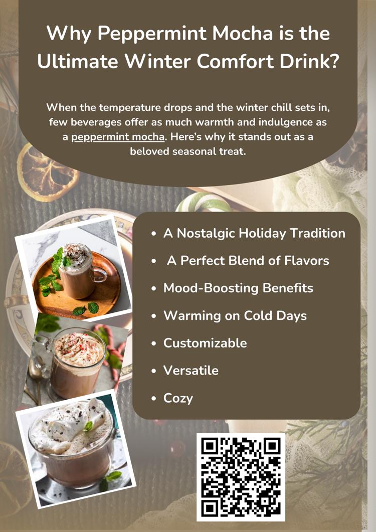Peppermint mocha is the ultimate winter comfort drink because it combines rich chocolate with refreshing peppermint, creating a cozy yet invigorating flavor. The warmth of the drink contrasts beautifully with chilly weather, while its festive taste evokes holiday memories. Its creamy texture and seasonal spices make it a soothing choice, perfect for relaxing moments during the cold, festive months.