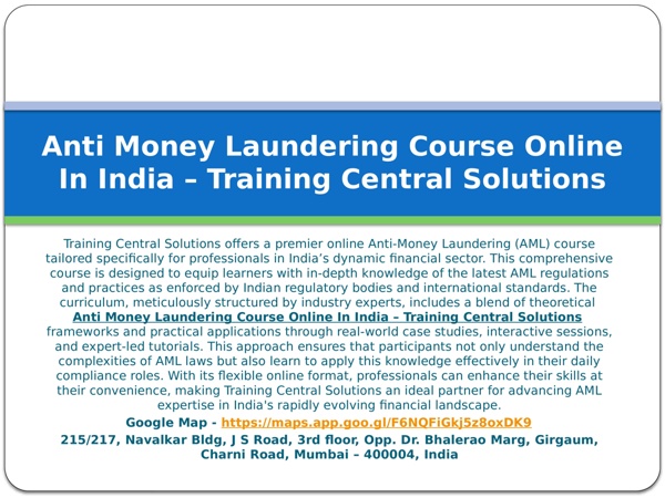 Anti Money Laundering Course Online In India Training Central Solutions.pptx