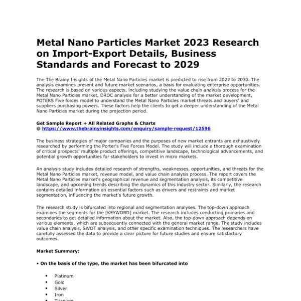 Metal Nano Particles Market 2023 Top Manufactures Growth Opportunities and Investment Feasibility 2029.docx