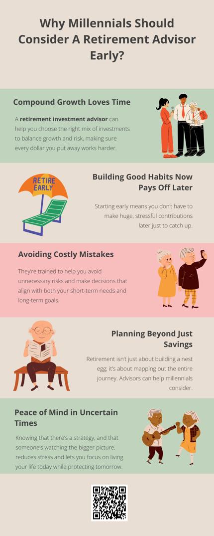 Millennials who start working with a retirement investment advisor early aren’t just planning for an old age they can’t yet picture — they’re buying freedom, flexibility, and confidence. The sooner you begin, the more options you’ll have down the road, whether that’s retiring early, traveling, or simply knowing you’ll never have to stress over running out of money. Early action is less about fear of the future and more about taking control of it.
