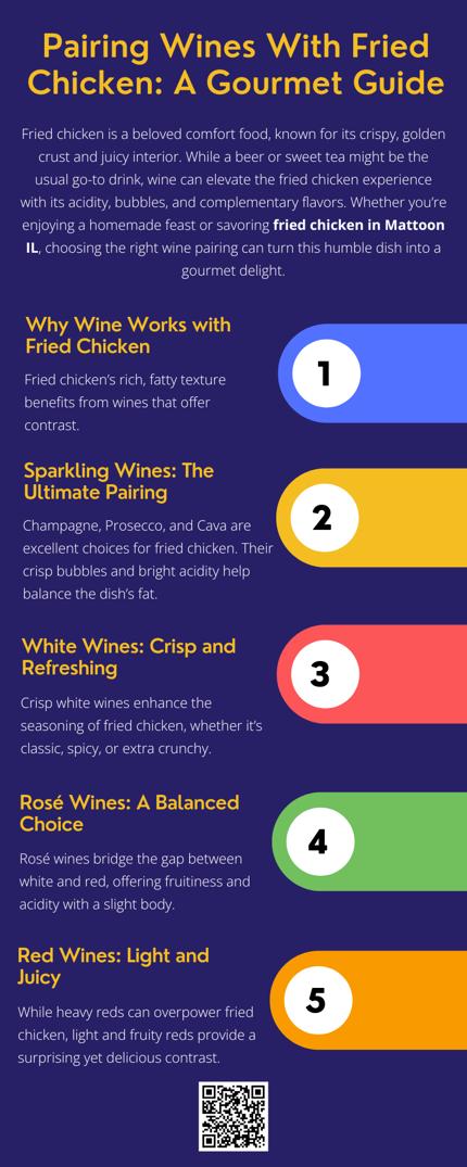Fried chicken and wine may seem like an unexpected pairing, but the right wine can transform this comfort food into a gourmet experience. Whether you’re dining at home or indulging in fried chicken in Mattoon IL, pairing it with a crisp white, a refreshing rosé, or a light red can elevate every bite. Cheers to fried chicken and fine wine!