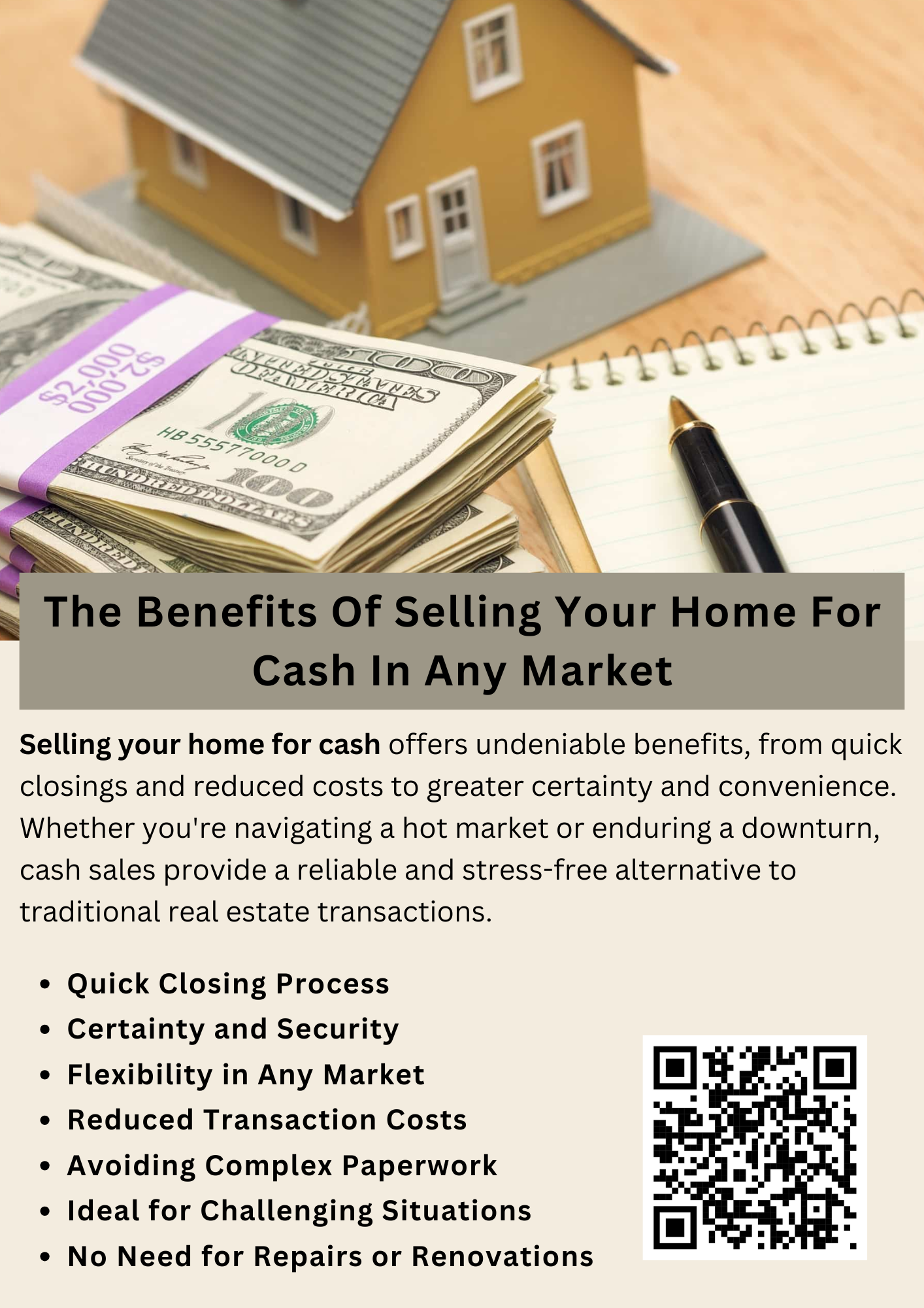 Selling your home for cash offers several benefits, especially in any market. It guarantees a quick sale with no contingencies, eliminates the need for repairs or renovations, and avoids realtor commissions or closing costs. Cash buyers are often more flexible, making the process smoother, providing certainty, and helping you close the deal faster, regardless of market conditions.