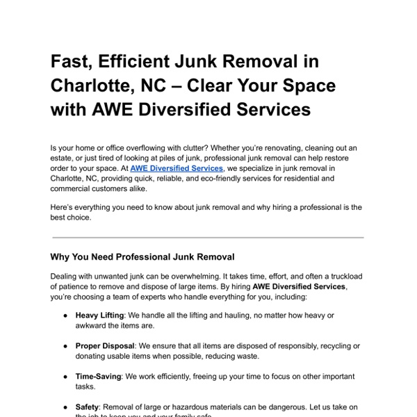 Fast Efficient Junk Removal in Charlotte NC Clear Your Space with AWE Diversified Services.pdf