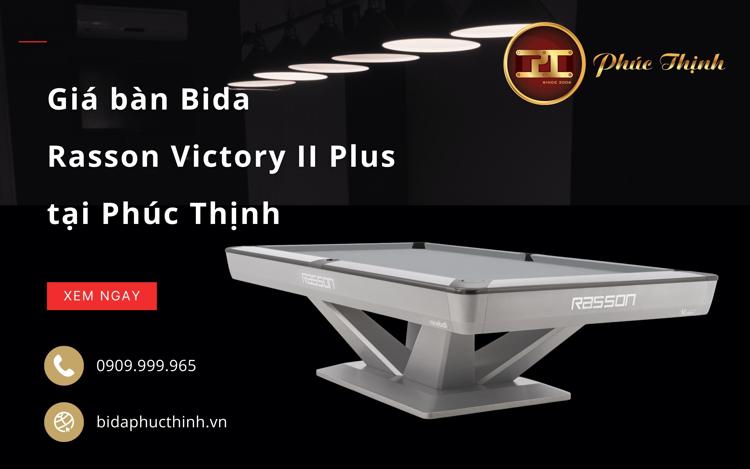 Bàn Bida Rasson Victory II Plus là dòng bàn bida lỗ cao cấp từ Rasson, với các vật liệu nhập khẩu cùng với thiết kế hiện đại, đáp ứng cho người chơi bán chuyên lẫn chuyên nghiệp và phù hợp để bạn đầu tư mở quán Bida chuyên nghiệp từ 5-10 bàn.