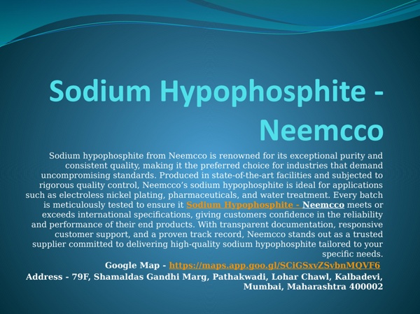 Sodium Hypophosphite Manufacturer High Purity Products from Neemcco.pptx
