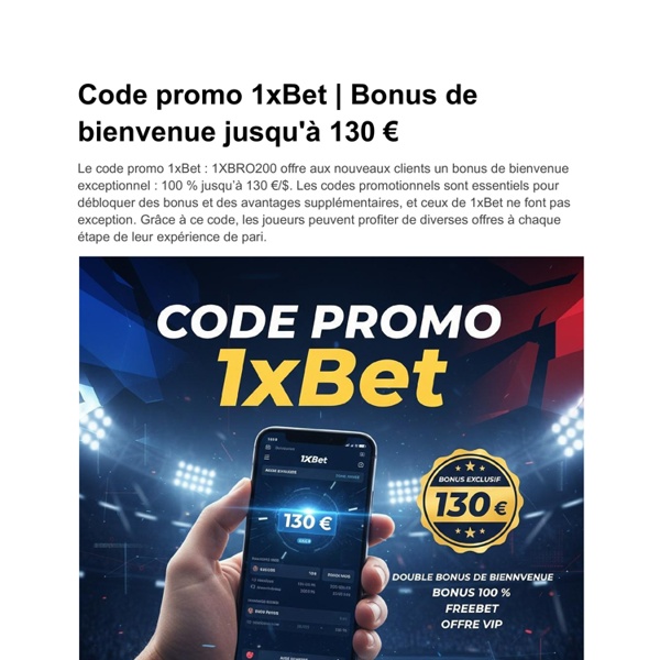 Code promo 1XBET Inscription - Bonus jusqua 130
