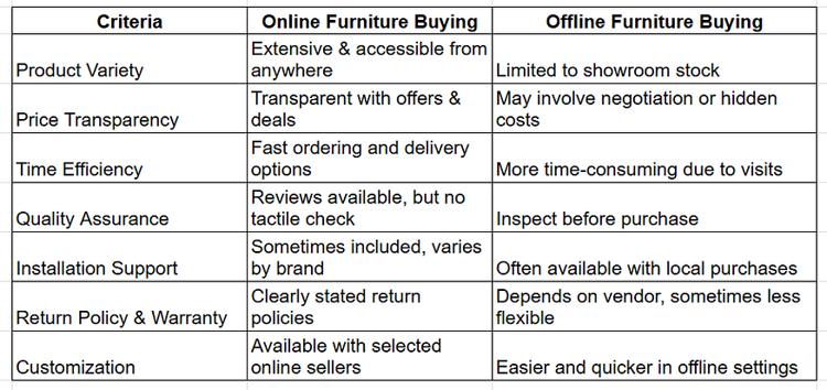 Ans- Check dimensions, materials used, warranty, customer reviews, shipping costs, and installation support before placing the order.