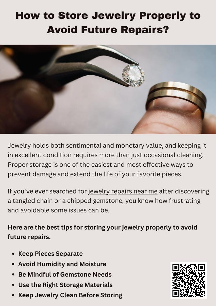 Taking the time to store your jewelry correctly can save you the headache of preventable damage. Avoiding scratches tarnishes, and tangles means fewer emergency searches for jewelry repairs near me and more time enjoying your beautiful pieces. With a little organization and care, your jewelry will continue to shine and tell your story for years to come.