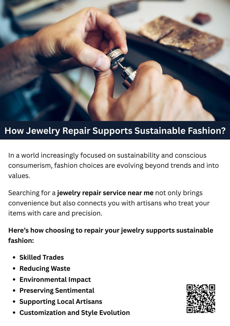 Jewelry repair sustainably plays a vital role by reducing waste, preserving sentimental pieces, and supporting local artisans. Instead of discarding damaged items, repairing them extends their life and lessens environmental impact. Searching for a jewelry repair service near me encourages responsible consumption while keeping cherished accessories stylish and functional for years to come.