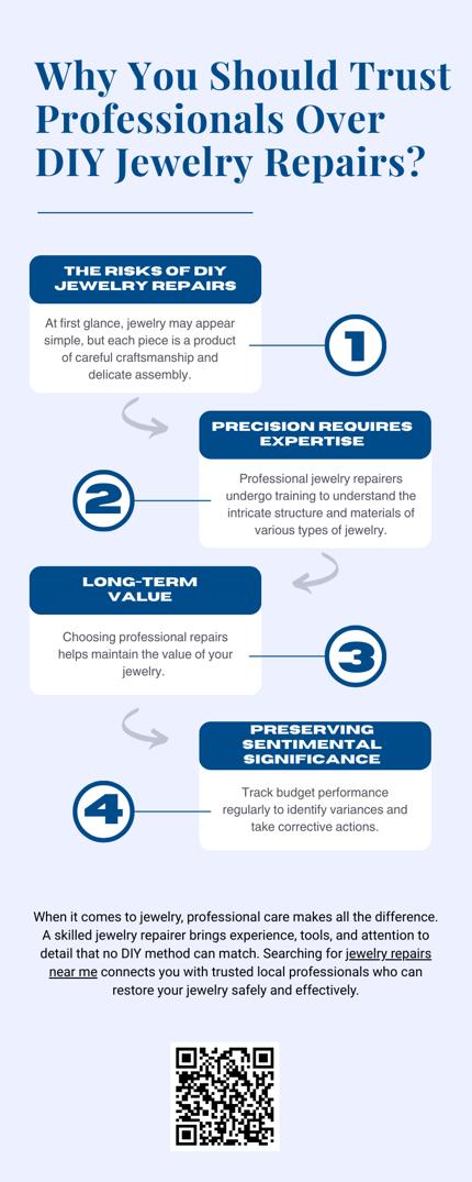 DIY jewelry repairs can lead to further damage, especially without the right tools or expertise. Professionals ensure precision, proper handling of delicate materials, and long-lasting results. Trusting skilled experts helps preserve the value and appearance of your pieces. Searching for jewelry repairs near me connects you with trusted local professionals who can restore your jewelry safely and effectively.