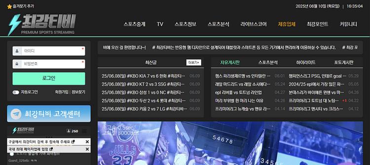 최강티비는 전 세계 스포츠 팬들이 선호하는 실시간 무료스포츠중계 플랫폼으로 직관적이고 간단한 사용자 친화적 인터페이스는 초보자도 쉽게 사용할 수 있고 광고 없는 쾌적한 환경은 물론 반응형 웹 디자인으로 설계되어 태블릿과 스마트폰 등 모든 기기에서 편리 하게 이용하실 수 있어 언제 어디서나 스포츠중계 시청을 하실 수 있습니다.
