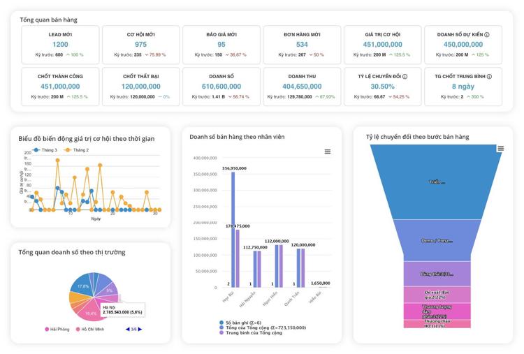 Báo cáo doanh thu, lợi nhuận, hiệu suất bán hàng được tổng hợp chi tiết theo ngày, tuần, tháng, quý giúp nhà quản lý nắm bắt kịp thời tình hình kinh doanh, đánh giá hiệu quả nhân viên và đưa ra các quyết định chiến lược chính xác dựa trên dữ liệu thực tế.