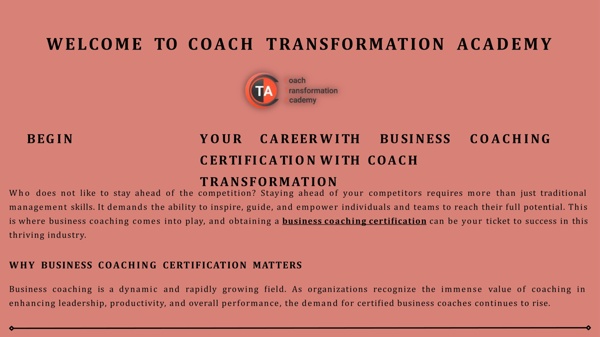 Begin Your Career with Business Coaching Certification With Coach Transformation.pptx