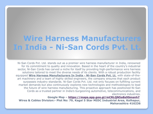 Wire Harness Manufacturers In India - Ni-San Cords Pvt. Lt..pptx