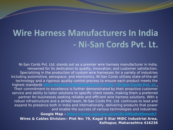 Wire Harness Manufacturers In India - Ni-San Cords Pvt. Lt..pptx