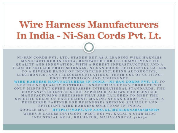 Wire Harness Manufacturers In India - Ni-San Cords Pvt. Lt..pptx