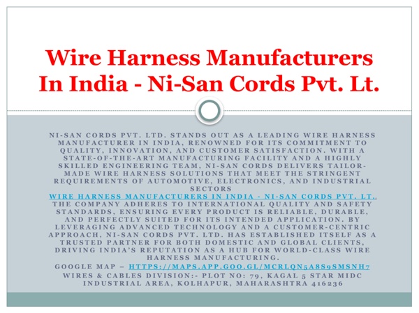 Wire Harness Manufacturers In India - Ni-San Cords Pvt. Lt..pptx