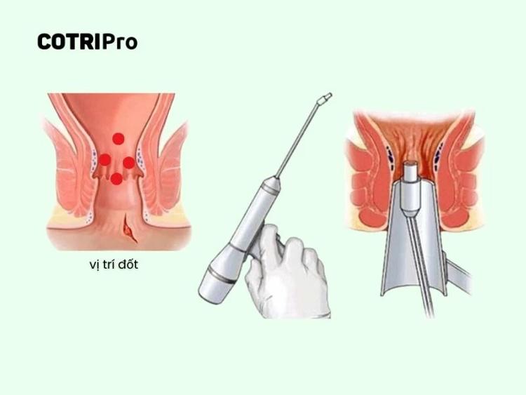 Phương pháp HCPT: Dùng sóng cao tần làm đông mạch máu, búi trĩ teo dần, ít xâm lấn, ít đau, hồi phục nhanh, phù hợp với nhiều mức độ trĩ.