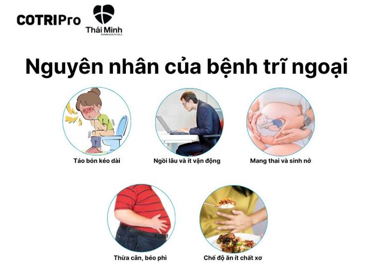 Bệnh trĩ ngoại chủ yếu phát sinh do ứ đọng máu hoặc viêm nhiễm ở các tĩnh mạch quanh hậu môn, khiến chúng bị giãn quá mức. Nhiều yếu tố và thói quen sinh hoạt làm tăng nguy cơ mắc bệnh, như: