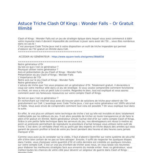 Astuce Triche Clash Of Kings Wonder Falls hack 2022 Or Gratuit Illimite.pdf