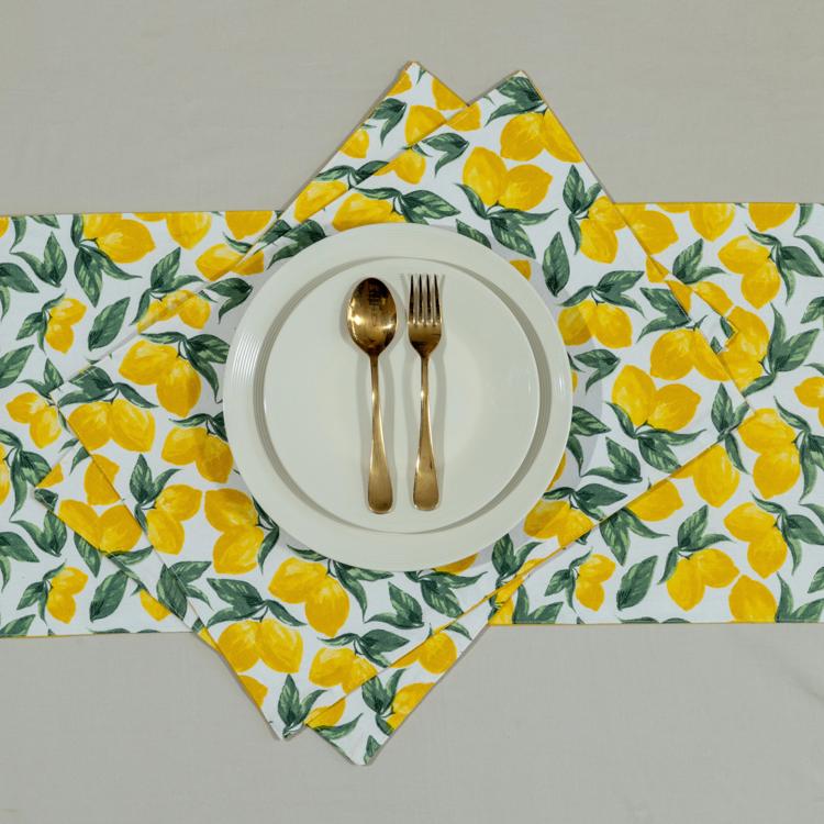 The lemon print is bright and playful. It adds color to your dining space and makes eating together more enjoyable.