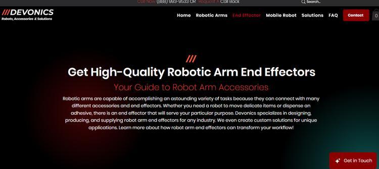 <!--td {border: 1px solid #cccccc;}br {mso-data-placement:same-cell;}-->Robotic arms are capable of accomplishing an astounding variety of tasks because they can connect with many different accessories and end effectors. Whether you need a robot to move delicate items or dispense an adhesive, there is an end effector that will serve your particular purpose. Devonics specializes in designing, producing, and supplying robot arm end effectors for any industry. We even create custom solutions for unique applications. Learn more about how robot arm end effectors can transform your workflow!