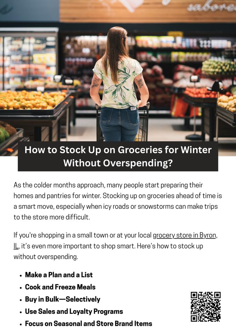 Stocking up for winter doesn’t have to be expensive. Plan meals, buy long-lasting essentials, and shop sales to stretch your budget. Choose seasonal produce, store brands, and bulk items wisely. Cooking in batches and freezing meals also helps save money. Smart shopping at a grocery store in Byron IL ensures you’re well-prepared for winter without overspending.