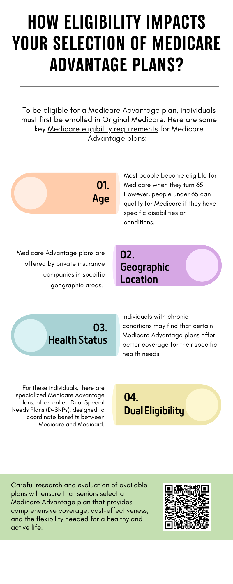 Eligibility for Medicare Advantage plans significantly impacts your choices. To qualify, you must be 65 or older, or under 65 with a qualifying disability, or have specific conditions like End-Stage Renal Disease. These medicare eligibility requirements determine the plans available in your area, their costs, coverage options, and additional benefits, ensuring you select a plan that suits your health needs and budget.