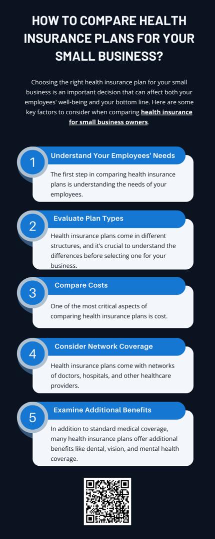 When comparing health insurance plans for small business owners, consider key factors like plan coverage, premiums, deductibles, and employee needs. Evaluate the network of doctors and specialists, prescription coverage, and wellness benefits. Understanding the specific needs of your workforce and balancing them with your budget is crucial in selecting the right plan for health insurance for small business owners.