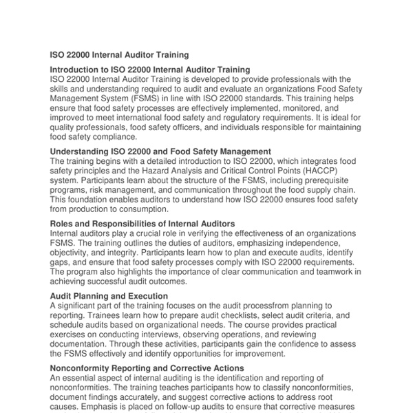 ISO 22000 Internal Auditor Training