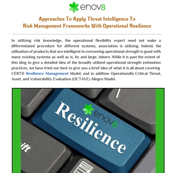 Approaches To Apply Threat Intelligence To Risk Management Frameworks With Operational Resilience