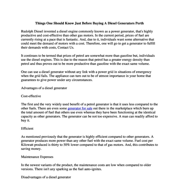 Things One Should Know Just Before Buying A Diesel Generators Perth.pdf