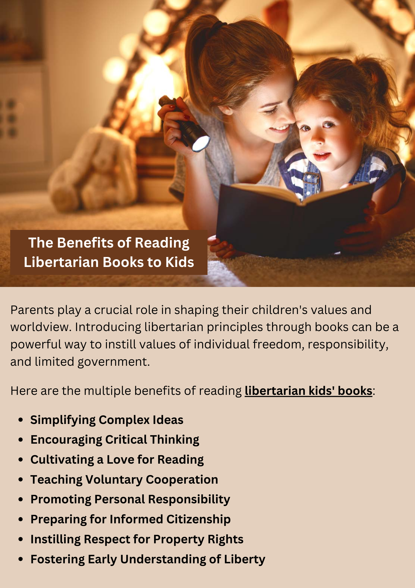 Parents find value in reading libertarian books to kids as it imparts principles of individual freedom, responsibility, and limited government. These books simplify complex ideas, encouraging critical thinking from an early age. By incorporating libertarian kids' books into bedtime routines, parents can instill foundational values, preparing their children for a future where they understand the importance of personal liberty and civic responsibility.