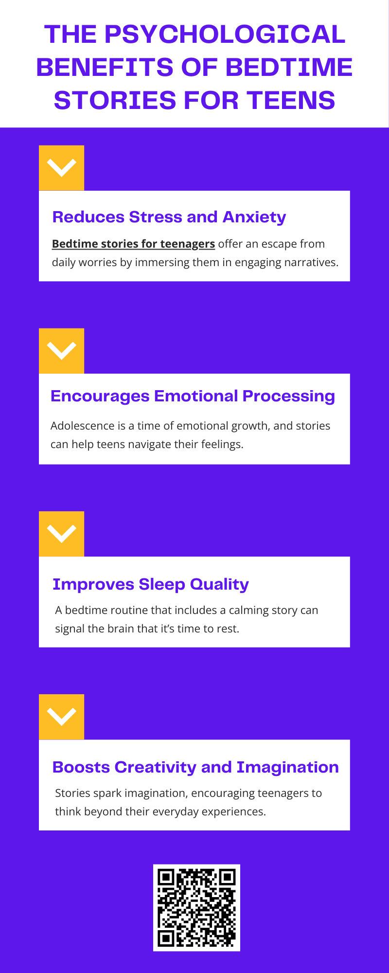 Incorporating bedtime stories for teenagers into a nightly routine offers numerous psychological benefits. From reducing stress and improving sleep to fostering creativity and emotional resilience, storytelling provides a simple yet powerful way to support teen mental health. Bedtime stories create a peaceful and enriching end to the day, helping teenagers navigate life with greater ease and confidence.