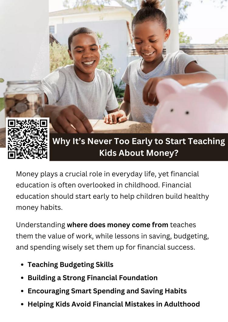 Financial education should start early to help children build healthy money habits. Understanding where does money come from teaches them the value of work, while lessons in saving, budgeting, and spending wisely set them up for financial success. By instilling these principles at a young age, parents can empower their children to become financially responsible adults who make informed and confident money decisions.