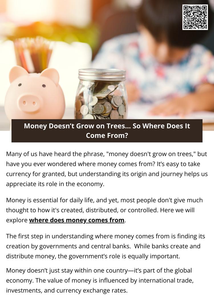 Where does the money come from? It comes from a combination of central banks, commercial banks, and governments. Through a mix of printing currency, creating digital money, and regulating the economy, money is brought into existence and distributed for use. Money flows through the economy in a cycle that involves borrowing, spending, investing, and saving, all of which help drive the financial systems of nations.