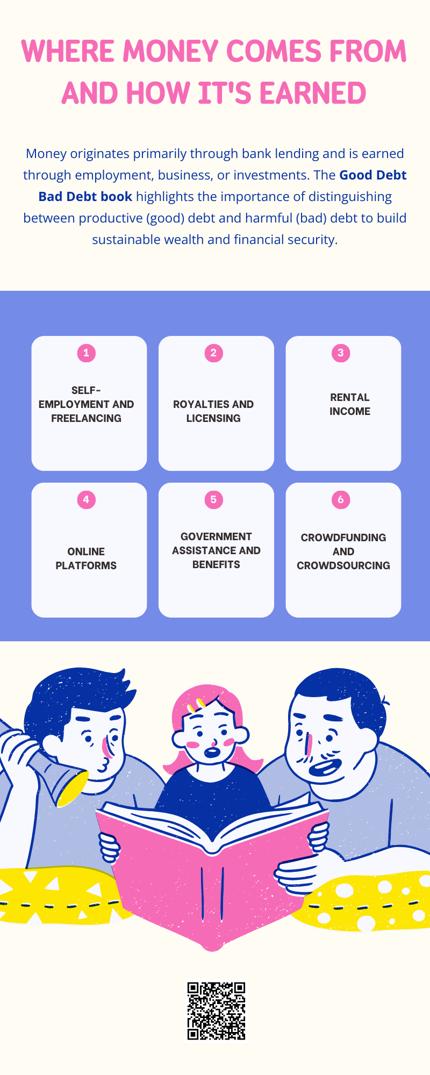 Money is made by working, creating businesses, or offering helpful services. Parents can teach kids how people earn money and why saving and spending wisely matter. Understanding the difference between needs and wants helps kids make better choices. Reading together, especially books like Good Debt, Bad Debt book, helps explain smart borrowing and how some debt can help us grow, while other debt can cause problems. Learning early builds strong money habits.
