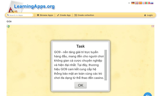 GO9 - nền tảng giải trí trực tuyến hàng đầu, mang đến cho người chơi không gian cá cược chuyên nghiệp và hiện đại nhất. Tại đây, thương hiệu GO9 cam kết cung cấp hệ thống bảo mật an toàn cùng các trò chơi đa dạng từ thể thao đến casino. Hệ thống của chúng tôi được tối ưu hóa hoàn toàn cho nền tảng di động giúp bạn có thể tham gia mọi lúc mọi nơi.