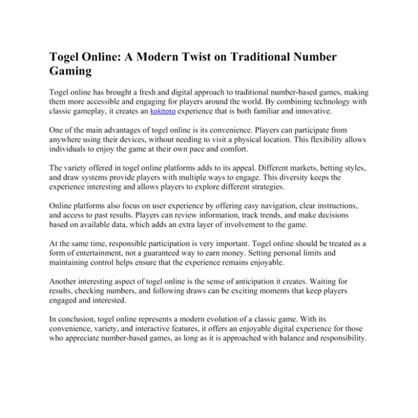 Togel Online A Modern Twist on Traditional Number Gaming.docx