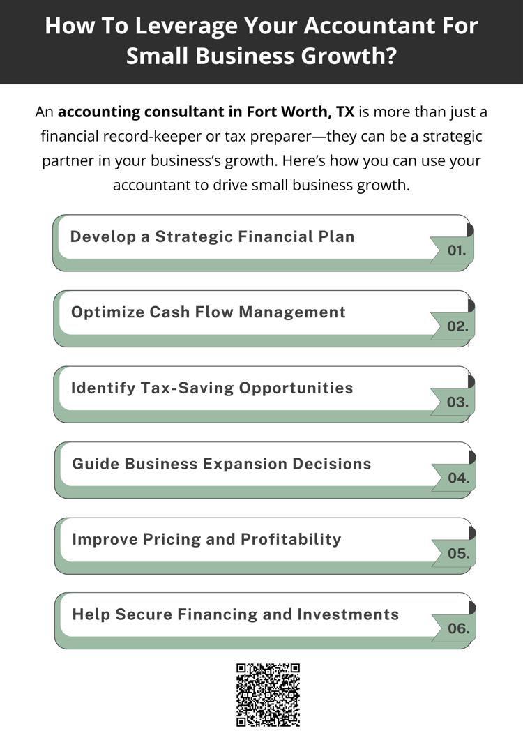A skilled accountant is a valuable asset in growing your small business. By leveraging their financial expertise, you can optimize cash flow, reduce tax liabilities, make data-driven decisions, and secure funding for expansion. Partnering with an accounting consultant in Fort Worth, TX who understands your business can give you the financial clarity and confidence needed to achieve long-term success.