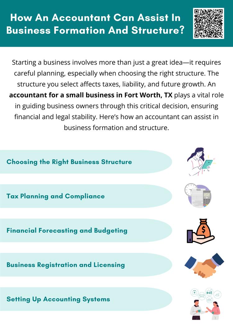 An accountant for a small business in Fort Worth, TX is a crucial partner in business formation, helping with structure selection, tax planning, compliance, and financial forecasting. Their expertise ensures a strong financial foundation, allowing entrepreneurs to focus on growth. Whether launching a startup or restructuring an existing business, professional accounting guidance can lead to long-term success.