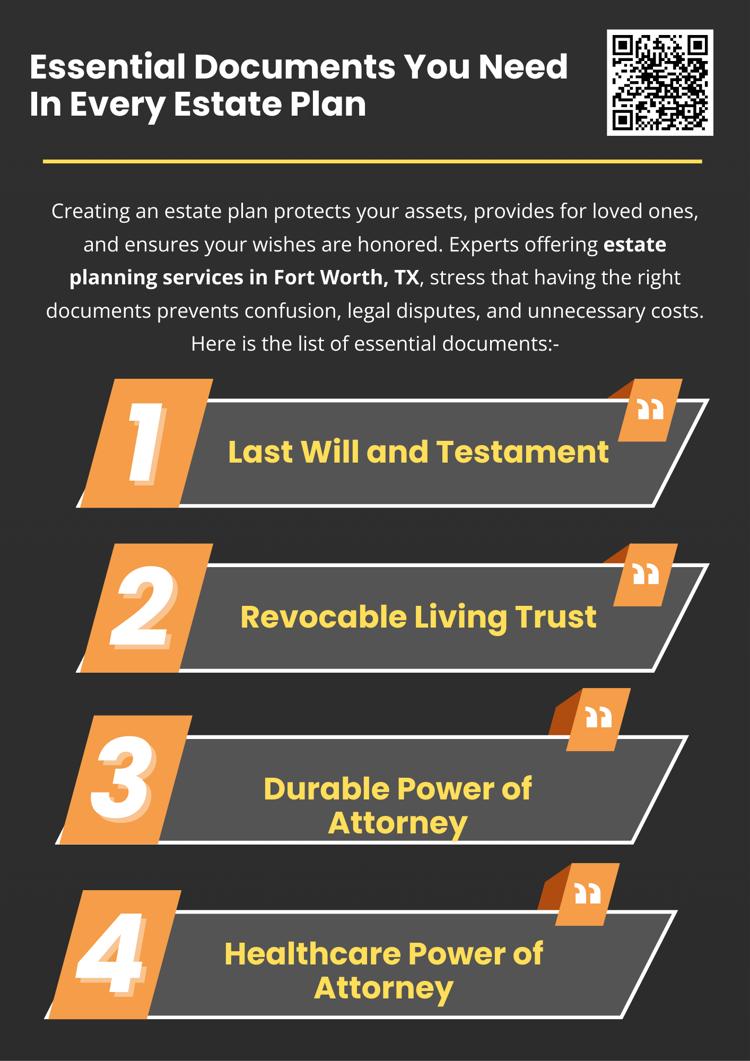 A well-structured estate plan relies on having the right documents in place. From wills and trusts to powers of attorney and healthcare directives, these essential documents ensure your wishes are honored, your loved ones are protected, and your estate is managed efficiently. Experts offering estate planning services in Fort Worth, TX, can guide you in preparing, organizing, and updating these documents to create a comprehensive, legally sound plan tailored to your needs.
