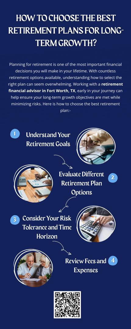 By carefully assessing your goals, evaluating plan options, managing risk, controlling costs, and leveraging expert advice, you can confidently select retirement plans that support long-term growth. Engaging a knowledgeable retirement financial advisor in Fort Worth, TX, can make this process smoother, helping you secure a financially stable and fulfilling retirement.