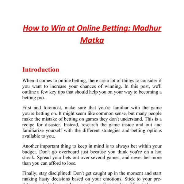 How to Win at Online Betting Madhur Matka.docx