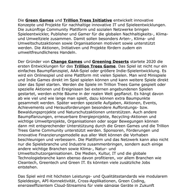 Green Games and Trillion Trees Game community tree planting platform for game developers gamers and publishers german version.pdf