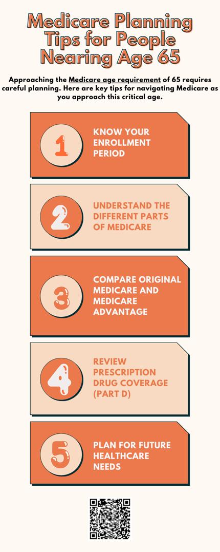 Approaching the Medicare age requirement of 65 requires careful planning. Understand your enrollment period to avoid penalties, compare Original Medicare and Medicare Advantage, and consider supplemental coverage for out-of-pocket costs. Review prescription drug plans and anticipate future healthcare needs. Seeking guidance from professionals or government resources can help ensure you choose the best Medicare plan for your situation.